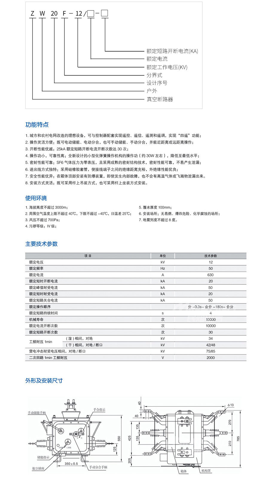 ZW20-12真空断路器(手动)