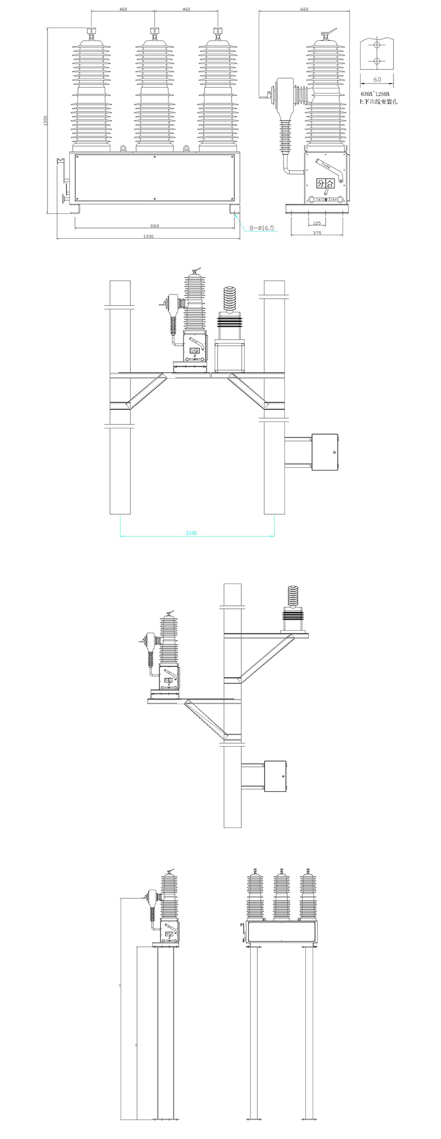 工频耐压1min(湿)(干) 相间、对地/断口 |
