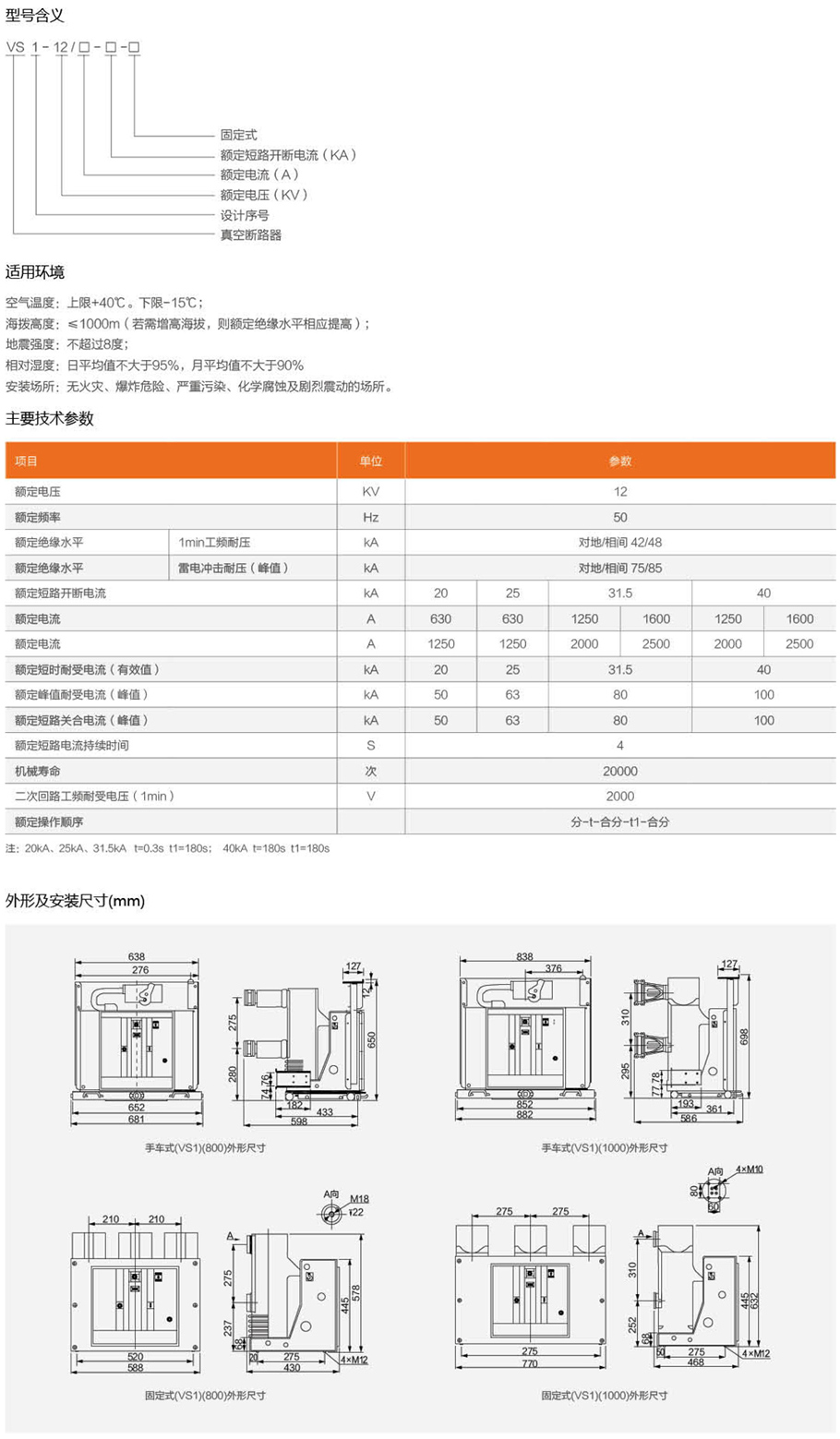 VS1-12型户内高压真空断路器,系三相交流50Hz额定电压为12KV电力系统的户内开关设备,作为电网设备、工矿企业动力设备的?;ず涂刂频ピ?。适用于要求在额定工作电流下的频繁操作,或多交开断短路电流的场所。