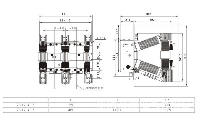采用小型化灭弧室,每相回路电阻≤40 Ω