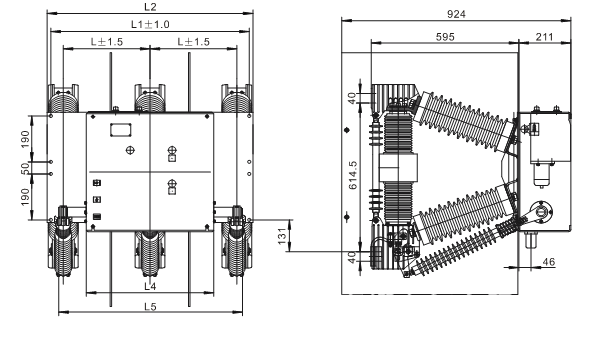 6相间中心距离mm210 ±1.5230±1.5280±1.5
