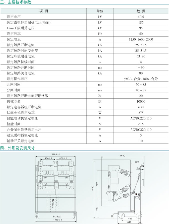ZN23-40.5系列户内高压真空断路器是三相交流50Hz,额定电压为40.5kV的户内装置,配有CT19弹簧操动机构。产品分为固定式和手车式两种。固定式是配置XGN17-40.5箱式固定式高压开关柜中使用;手车式配置在JYN1-40.5手车上在JYN-40.5移开式金属封闭开关柜或GBC高压开关柜中使用,也可配置在 KYN10-40.5手车上在KYN10-40.5组装式金属封闭开关柜中使用。