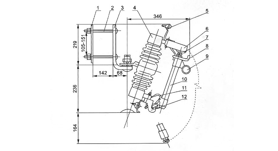 熔断器是由基座和消弧装置两大部分组成,灭弧管下端装有可能转动的弹簧支架,始终使熔丝处于紧张状态,以保证灭弧管在合闸位置的自锁,线路与变压器过载或短路中,熔丝熔断,熔丝迅速从灭弧管中抽出,灭弧管设计为逐级排气式解决在同一熔断器上开断大小电流的矛盾。