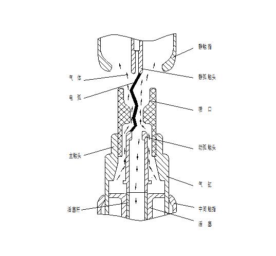 3.1断路器采用六氟化硫(SF6)气体作为灭弧介质,六氟化硫气体不但有良好的灭弧性能,而且电气绝缘性能非常好,气体在开断时被压气筒压缩后喷向电弧并将电弧熄灭,开断的简单原理如图1。该断路器具有结构简单、开断性能良好,并且操作平衡等许多优点。它还是一种理想的切合电容器组及电抗器组的开关。