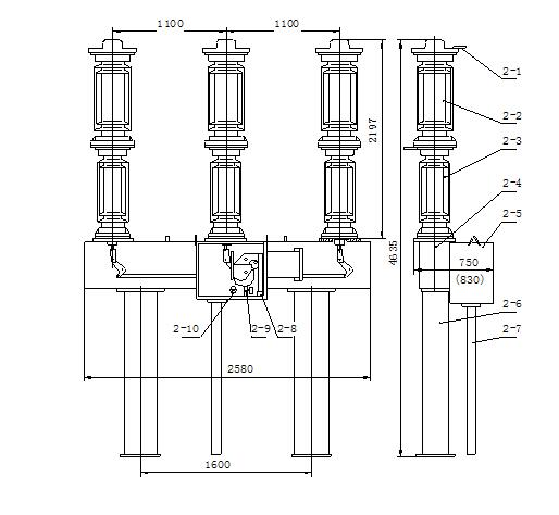 1.1 LW9—72.5/T2500—31.5型高压六氟化硫断路器系户外三极交流50Hz高压电器设备,主要用于输变电线路的保护,也可作联络断路器使用。断路器为三极组装在一个框架上,不能进行单极操作。