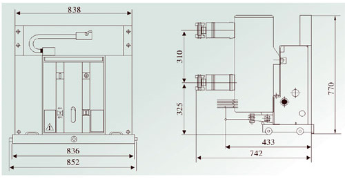 该断路器采用操动机构与断路器本体一体式设计,既可做为固定安装单元,也可配有专用推进机构,组成手车单元作用。